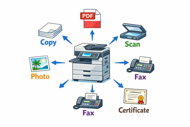 結論から言うと、コンビニコピー機では コピー・PDF印刷・写真プリント・スキャン・FAX・行政証明書の発行 など多くの機能が利用できます。最近ではスマートフォンから直接印刷できるサービスも普及しており、家庭用プリンターがなくても困らない場面が増えています。