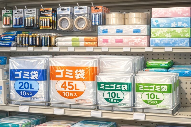 コンビニでは、多くの場合家庭用のごみ袋を購入することができます。特に夜間や急ぎの場面では、生活インフラとして非常に頼りになる存在です。