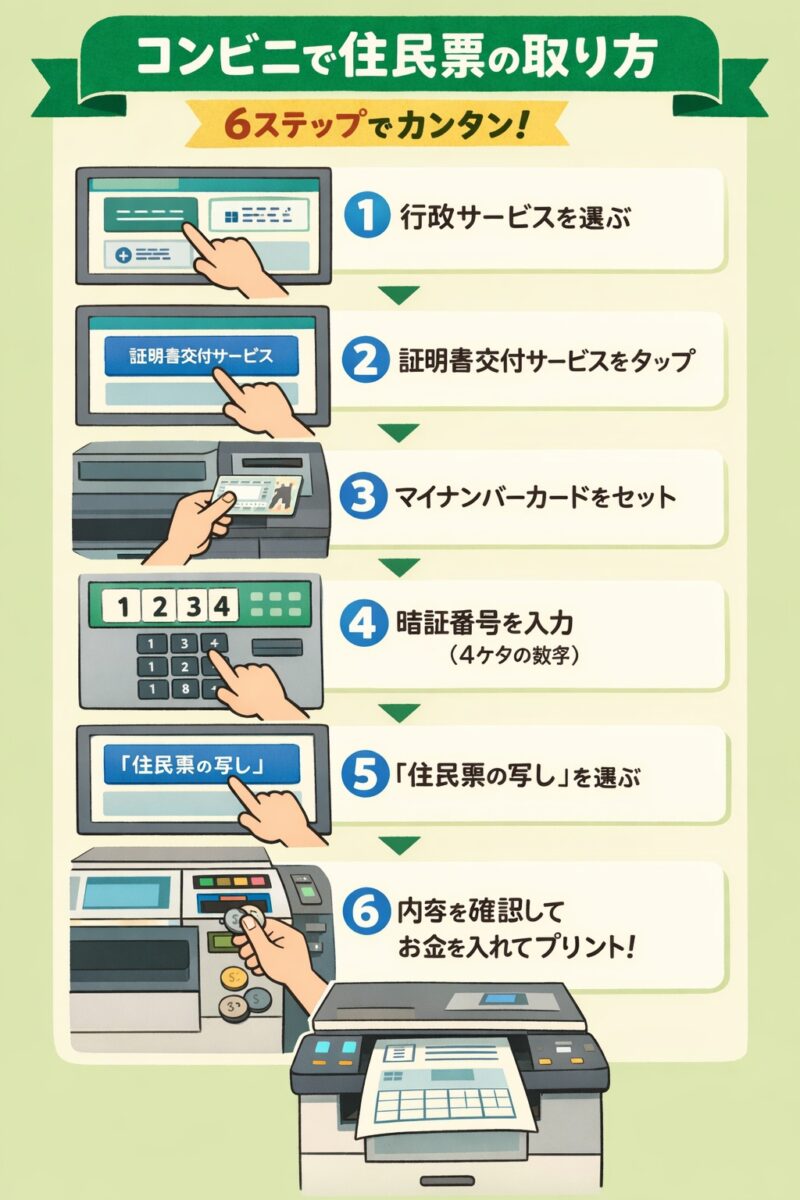 コンビニで住民票を取るために必要なのは、次の3つだけです。