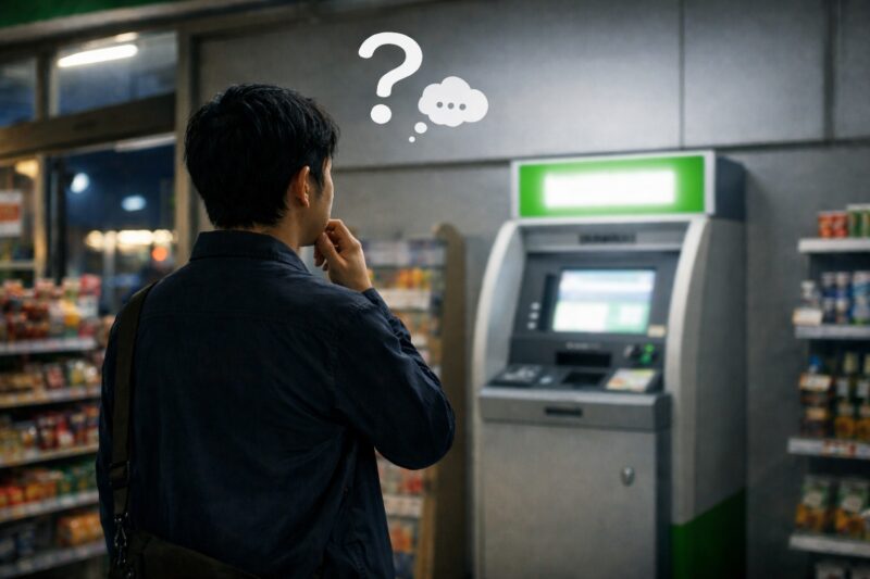 多くのコンビニATMで利用できますが、24時間必ず使えるわけではありません。深夜にはシステムメンテナンスが行われることがあり、その時間帯は取引できない場合があります。また、ATMの設置場所や運営会社(セブン銀行・ローソン銀行・イーネット)によって、実際の利用可能時間が異なる点にも注意が必要です。