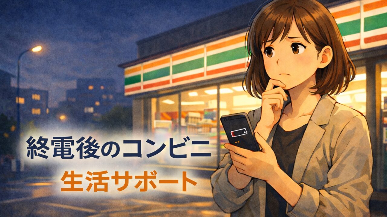 すぐに帰る方法が見つからない場合でも、コンビニは現金の確保やスマホ充電など、次の行動を考えるための環境が整っています。