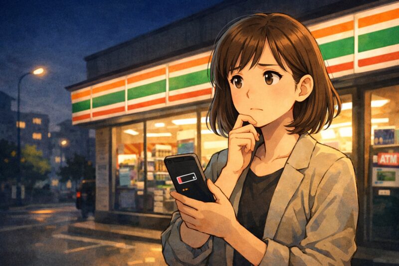 スマホの電池切れは、終電後では致命的です。地図、決済、連絡手段が一気に使えなくなります。