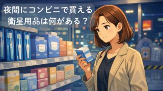 深夜帯は医療用品コーナーが目立たない場所にある場合があります。レジ裏や日用品棚の一角に置かれていることもあるため、見当たらなければ店員に確認するとよいでしょう。