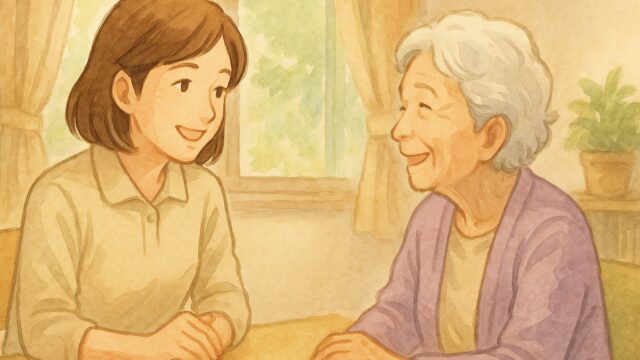 介護では“話を聞く”ことが信頼の第一歩です。相手の言葉を遮らず、うなずきながら聞くだけで「この人になら話せる」と感じてもらえます。