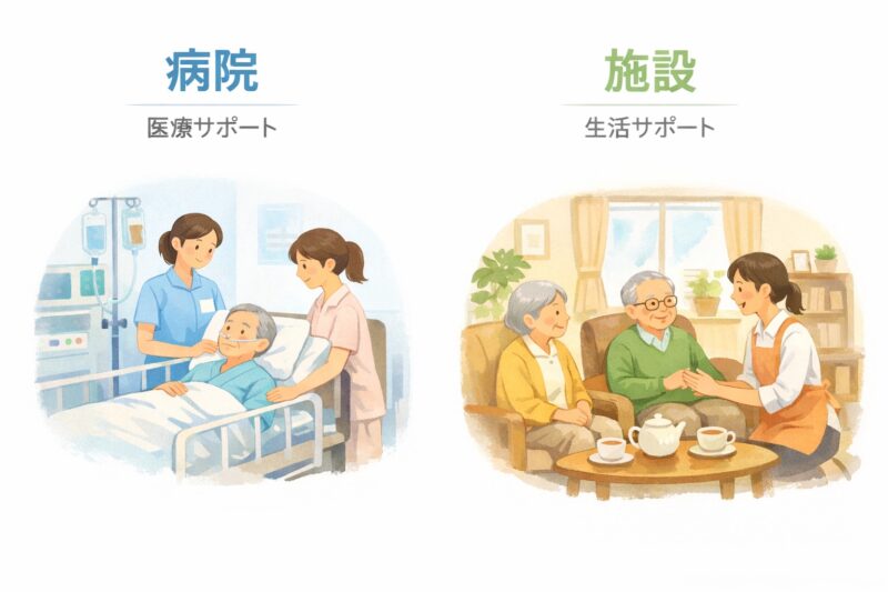 病院は「医療が主」、施設は「生活が主」。